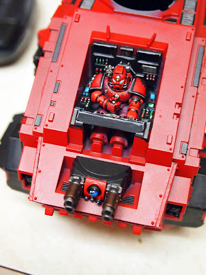 In part 5 of Build a Stormraven, after priming everything Dragon Red and magnetizing the wings, I started to paint the details on the ship. First I put a base coat of black on all areas that I wanted to be black or Boltgun Metal.